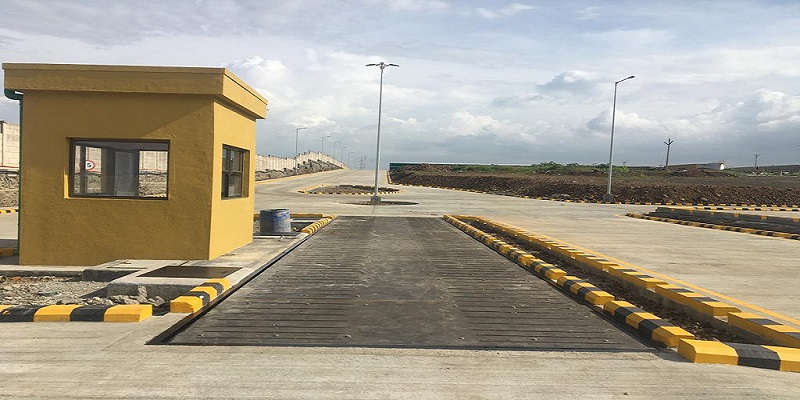 The weighbridge platform is installed inside a civil pit, allowing the surface of the weighbridge to remain level with the surrounding ground.